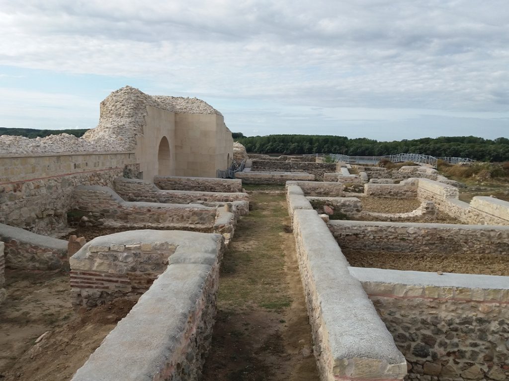 Sectorul de est: Reluate în anul 1975 și continuând până astăzi, cercetările au dus la descoperirea mai multor constucții bogate și resturi de barăci romane suprapuse și parțial folosite drept fundații pentru construcții din perioada romano-bizantină. Aceste barăci (contubernia) țineau seamă planimetric de rețeaua stradală existentă și aveau probabil formă dreptunghiulară cu laturile paralele zidului de incintă al cetății. Barăcile prezintă mai multe faze distincte, primele stabilimente de lemn fiind înlocuite ulterior de construcții mai trainice, din piatră, urmare a eforturilor militarilor cantonați aici. Ultima fază, vizibilă și astăzi în forma conservată este cea mai amplă și cea mai bine documentă. Până în prezent au fost cercetate două edificii distincte – E1 și E2 precum și o serie de alte construcții anexe. Tehnica de construcție utilizată, opus mixtum, alternează asizele de piatră legate cu mortar cu brâuri de cărămidă. Conform cercetărilor arheologice s-a constatat faptul că la partea superioară clădirile erau prevăzute cu acoperiș în două ape, realizat din țigle îmbinate cu olane, toată structura fiind susținută de grinzi solide de lemn. Perimetrul a fost amenajat cu zone pietonale de pasaj precum și cu instalații de drenaj și scurgere a apei pluviale, evacuarea acesteia realizându-se prin canale orientate spre zidurile de incintă ale fortificației atât spre est către curtina F, cât și spre sud către curtina G. Locuirea încetează în mod violent spre sfârșitul secolului al VI-lea, totul fiind mistuit într-un incendiu puternic ale cărui urme pot fi vizibile și astăzi pe zidurile perimetrale ale curtinelor. Câteva secole mai târziu, amenajarea bordeielor din ultima fază de existență a cetății afectează ruinele edificiilor incendiate, amprenta locuințelor semiîngropate fiind conservată și astăzi pe traseele zidurilor edificiilor menționate.