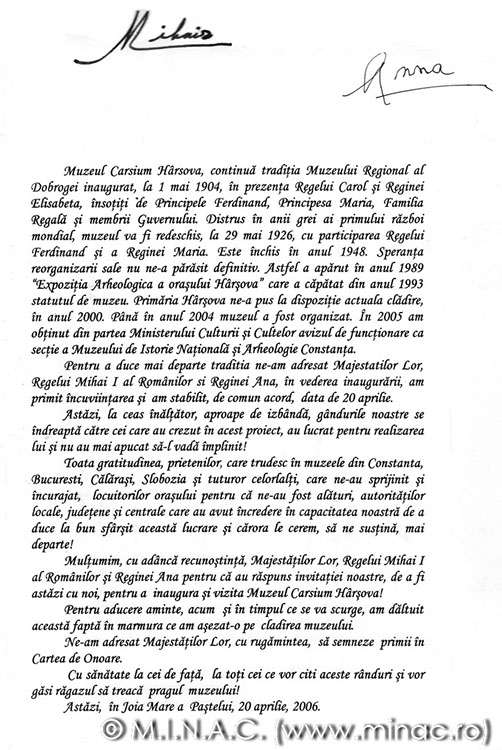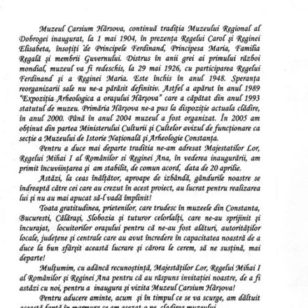 Entuziasmați de această ,,ispravă” Adrian Rădulescu directorul muzeului constănțean și profesor la Universitatea ,,Ovidius”, împreună cu Mihai Irimia decanul Facultății de istorie de la Universitatea ,,Ovidius” au decis organizarea muzeului într-un spațiu de sine stătător. După lungi căutări și zbateri, autoritatea locală a pus la dispoziție imobilul din strada Revolutiei 27. Între anii 2000 și 2005 clădirea este pregătită, muzeul amenajat, iar în aprilie 2006 este inaugurat, cu participarea Regelui Mihai și a Reginei Ana, Muzeul Carsium Hârșova. Aici au fost prezentate publicului piese descoperite în săpăturile arheologice din așezarea neolitică, cetatea romană și medievală, precum și din necropolele acestora.
