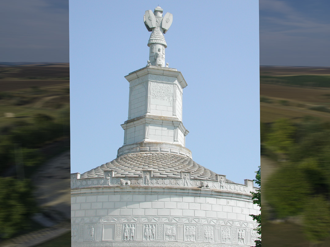 În imaginea sa originală, monumentul se va fi înfăţişat ca un uriaş cilindru, suprapus de un trunchi de con, acoperit cu plăci de piatră în forma unor solzi de peşte, iar deasupra se aflau două prisme hexagonale de mărimi diferite. Acestea din urmă serveau ca soclu statuii simbol al victoriilor repurtate pe cale militară – Tropaeum-. Întregul monument avea o înălţime şi un diametru de 40 metri.